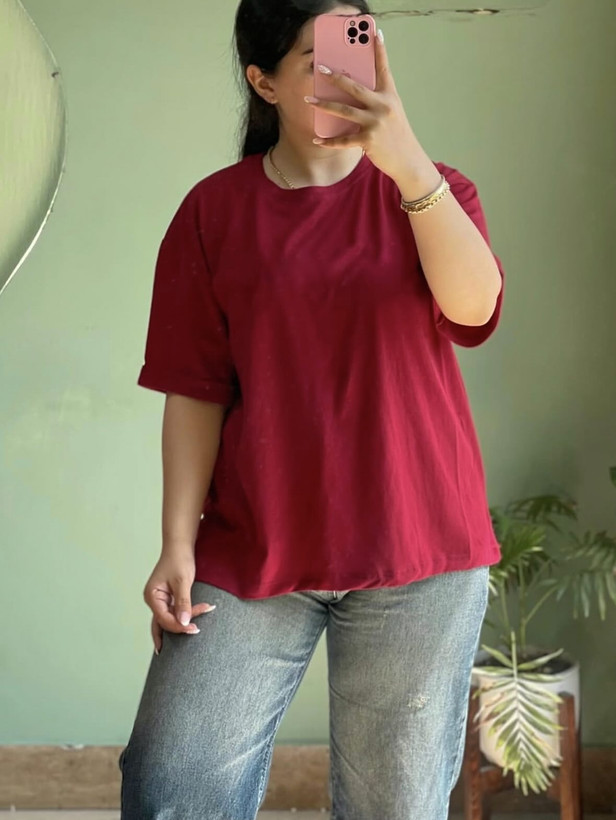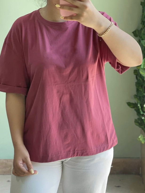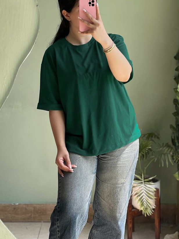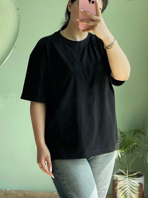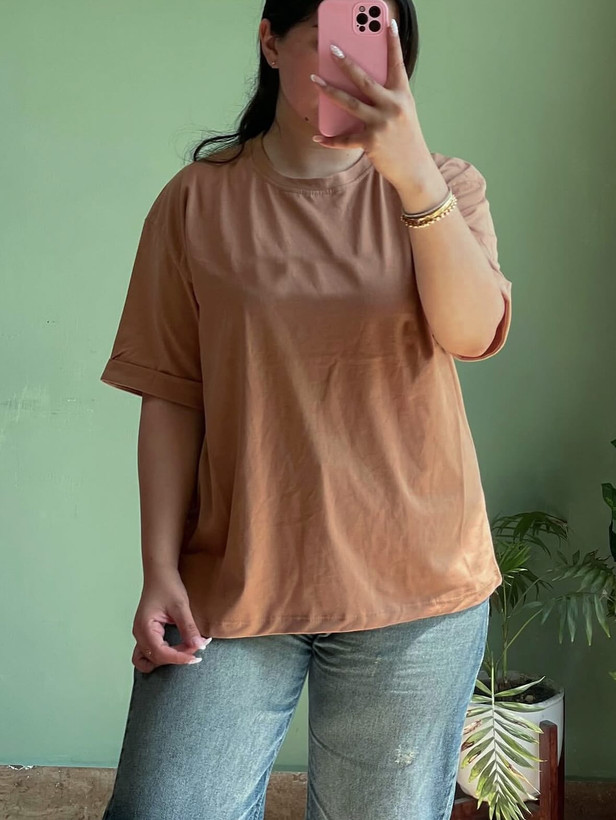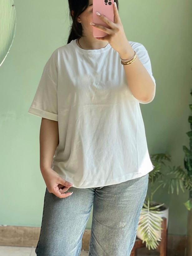 تیشرت قواره دار بسیک آستین پاکتی جنس: نخ و پنبه باکیفیت سایز فری سایز 36 تا 48 قد 65 دور سینه در حالت عادی 118(کشسانی هم دارد تا 135 دور قسمت پایین کار 115 قد از یقه تا انتهای استین 40