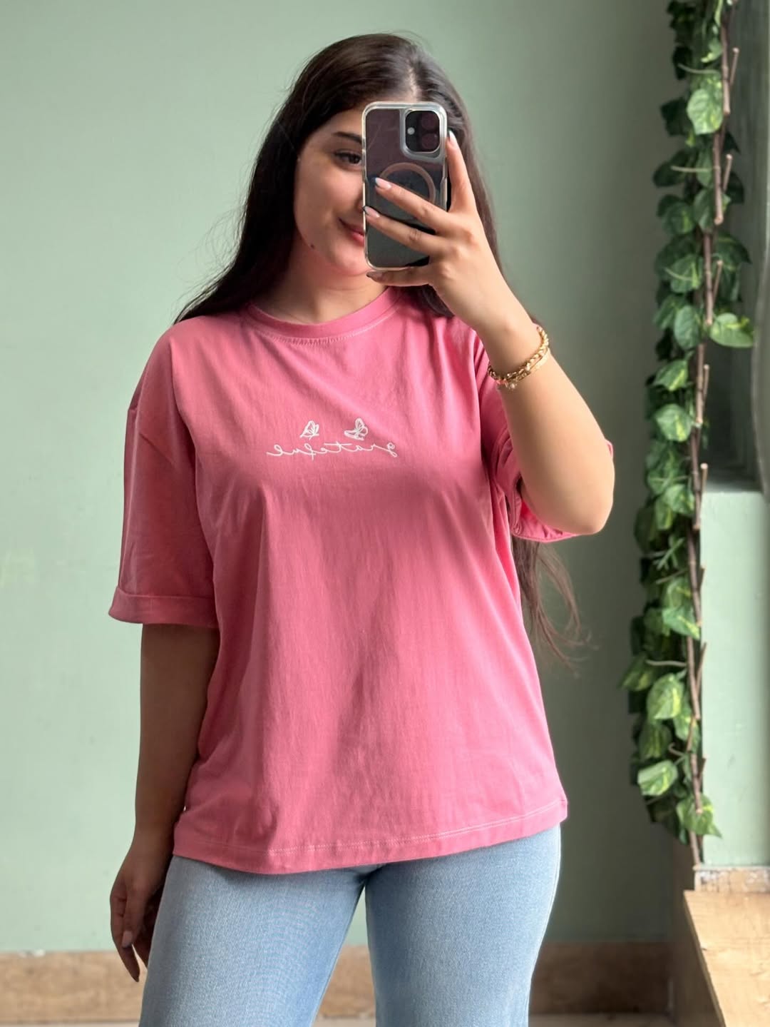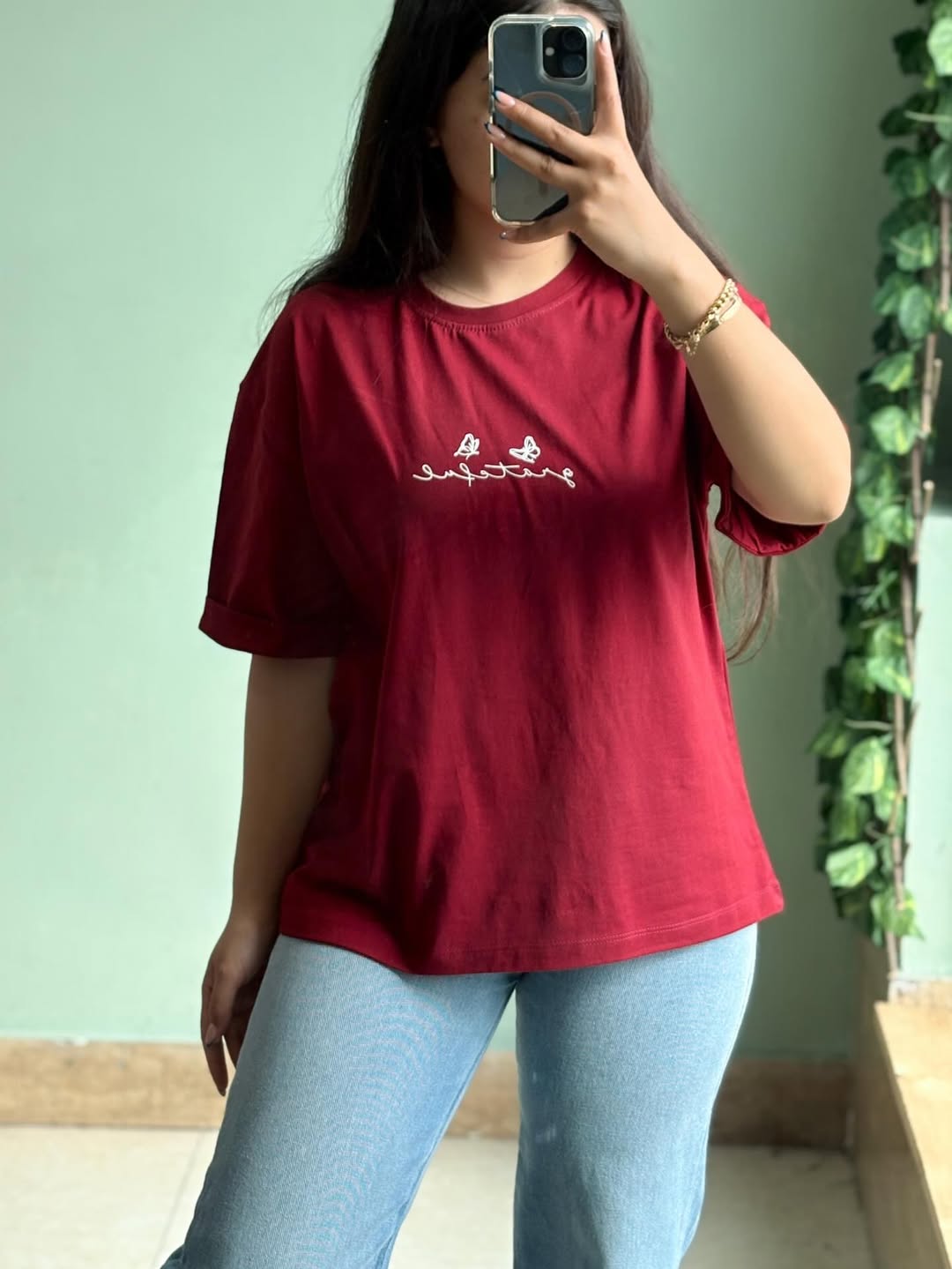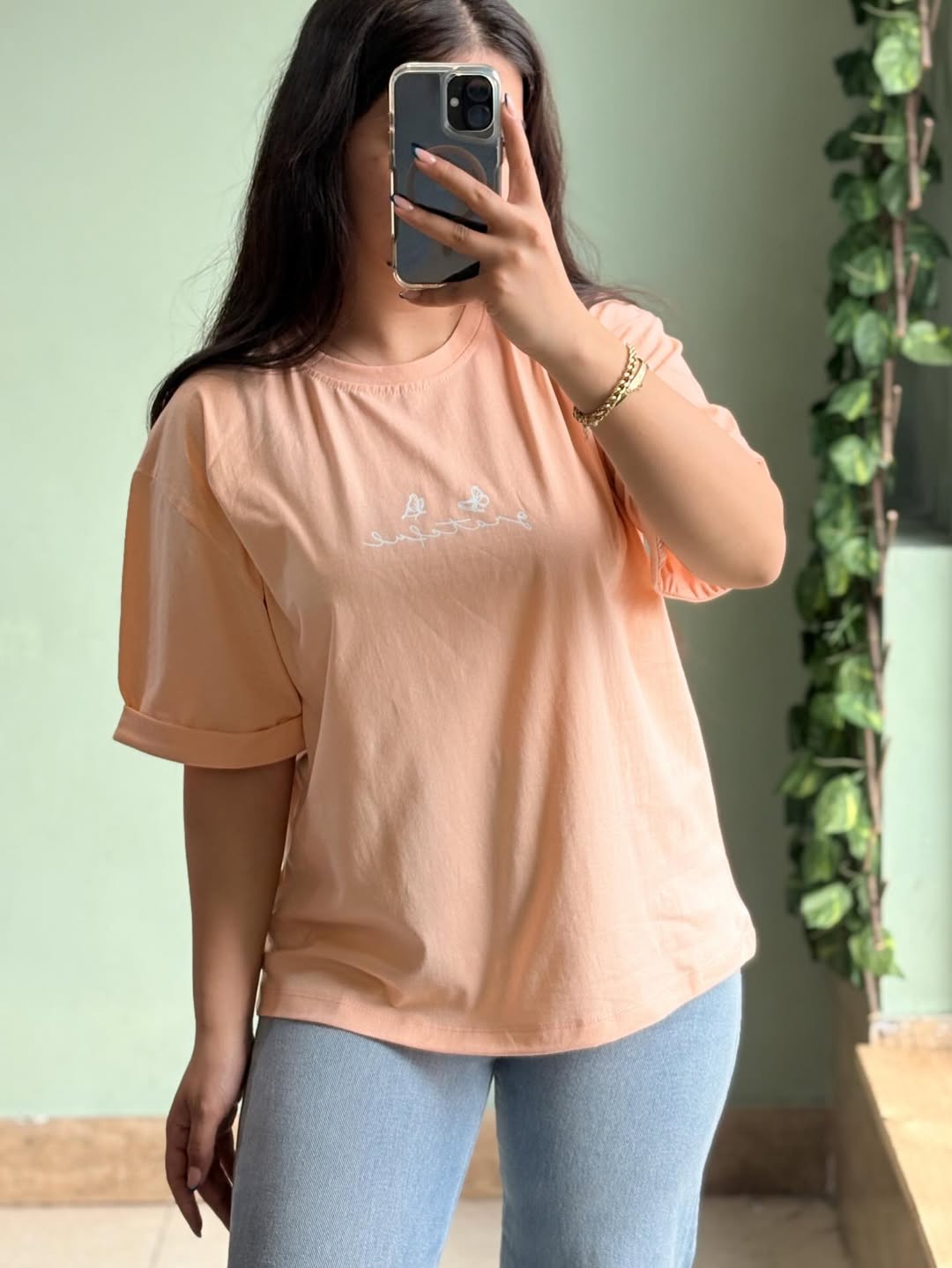 تیشرت با فری سایز، قد ۶۵ سانتیمتر و عرض عادی ۱۱۰ سانتیمتر. قد آستین از یقه و دور بازو عادی است. جنس این تیشرت از نخ سوپر پنبه میباشد.