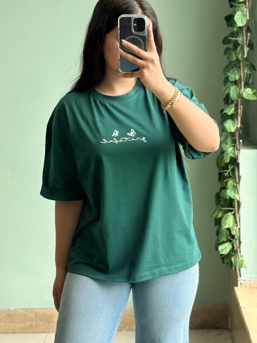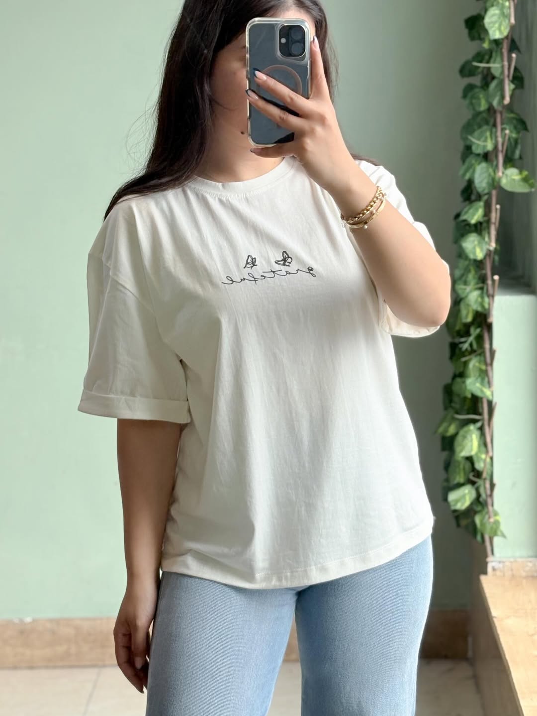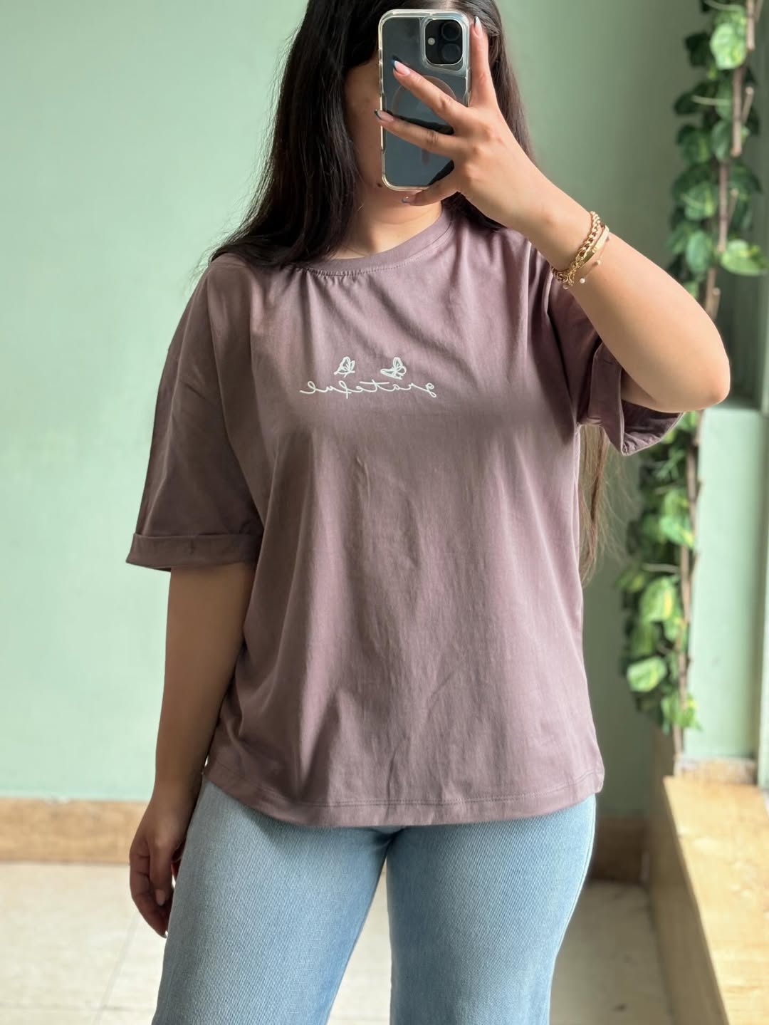 تیشرت با فری سایز، قد ۶۵ سانتیمتر و عرض عادی ۱۱۰ سانتیمتر. قد آستین از یقه و دور بازو عادی است. جنس این تیشرت از نخ سوپر پنبه میباشد.